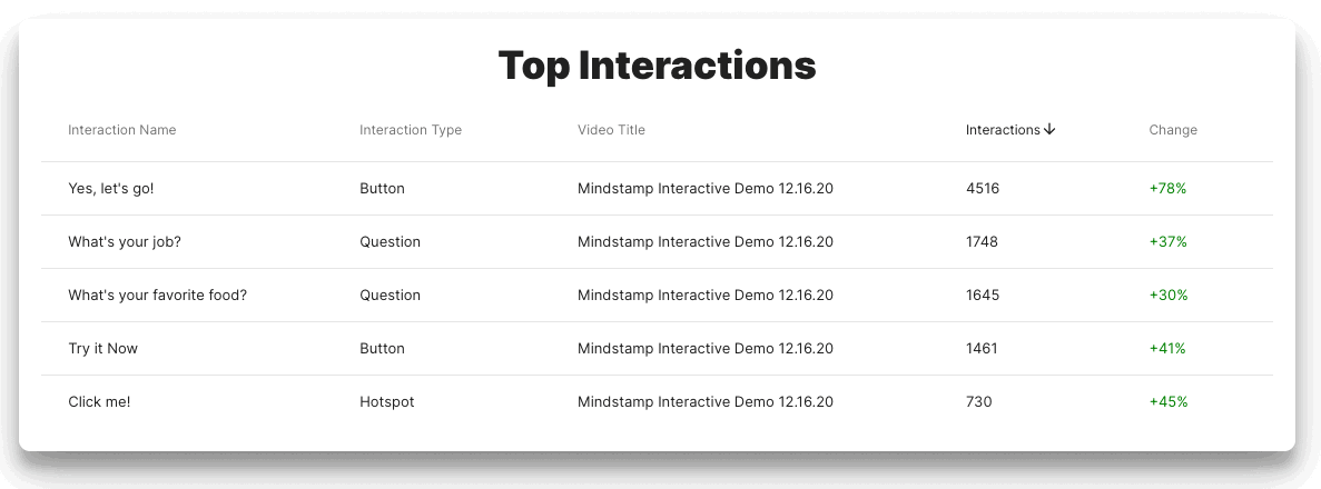 Quickly tally total interactions on your videos by day. You can also see top interactions to see which interactions have the most impact on your audience.