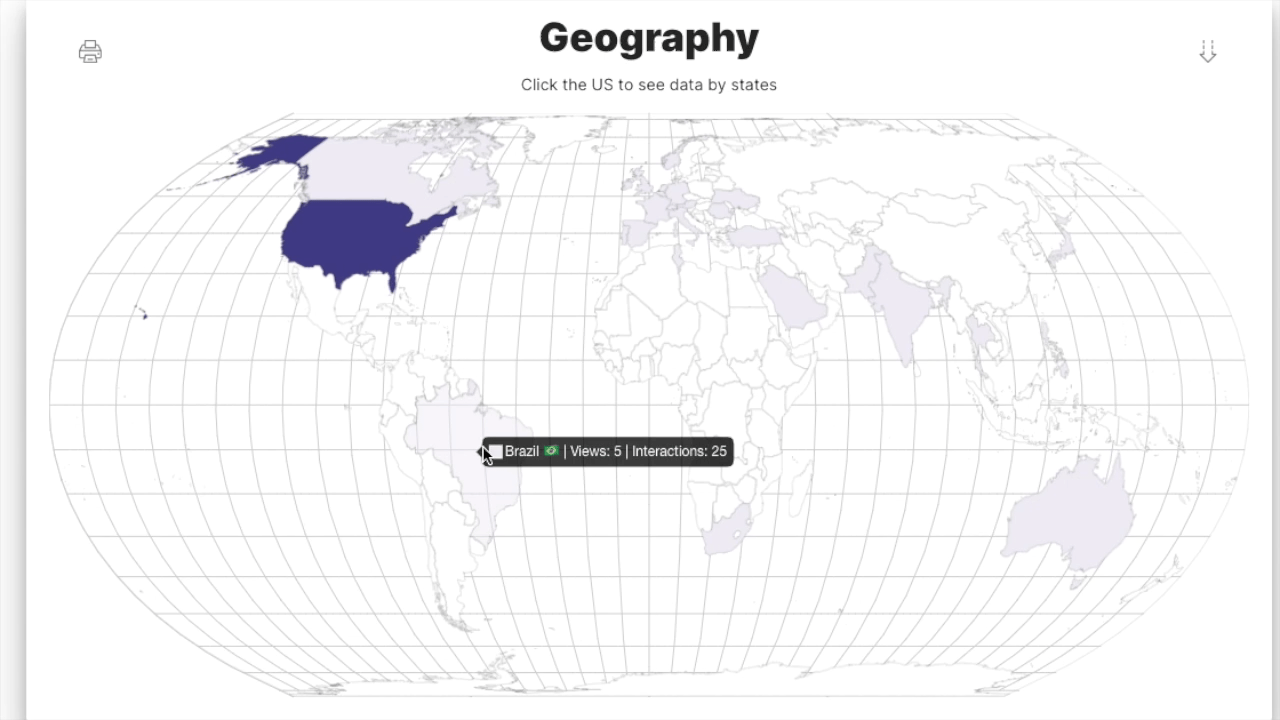 However, we didn’t stop there. We also have a geographical chart that shows viewers and interaction by country or by state allowing you to visualize your videos’ performance across different demographics.