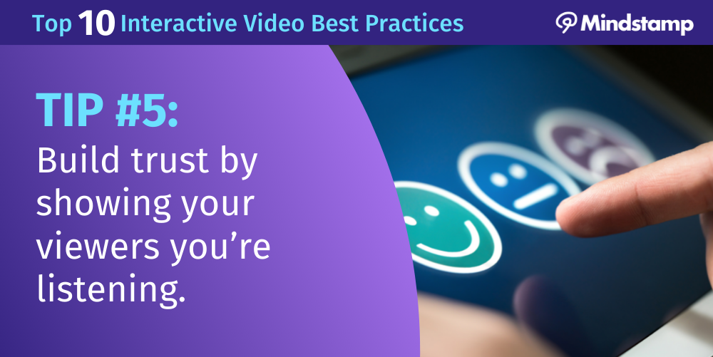 As a business, the first step to building trust is by providing your contacts with ways to engage with your brand. You can send net promoter score surveys, ask for online reviews where they can share their experience, or you can use interactive videos as a way to interact with your brand. In fact, interactive videos result in 3-4x greater viewer engagement than traditional linear videos, which is why leveraging interactive video to build trust with your viewers is tip #5 in our Top 10 Interactive Video Best Practices list. By creating a video experience that not only allows your viewers to become more educated about your brand and offerings, but can also feel as though you’re listening to their wants and needs can ultimately lead to their earned trust in your business.
