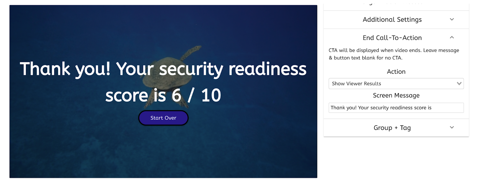 “Final Score” calls-to-action that show your viewers the result of the assessment they took, alongside an opportunity to try again: