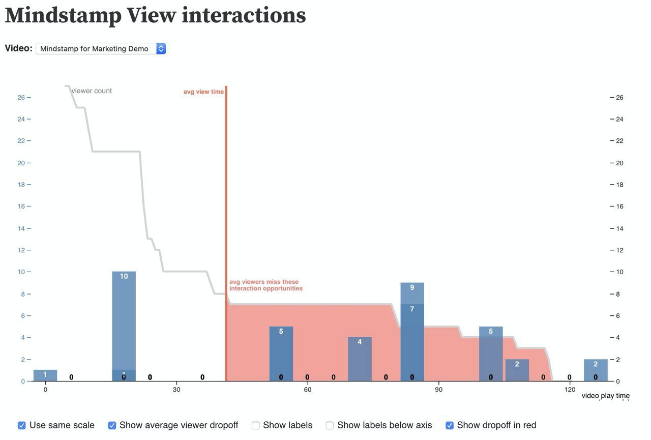 - By integrating checkpoints into the video that trigger viewer participation (for instance a question to check interests, buttons that jump to the next section, or a simple ‘go on’ click to progress past an intended pause), you bring the viewers attention back to the video and you know through Mindstamp analytics how many viewers actually reached that point in the video and took the next step to watch more.