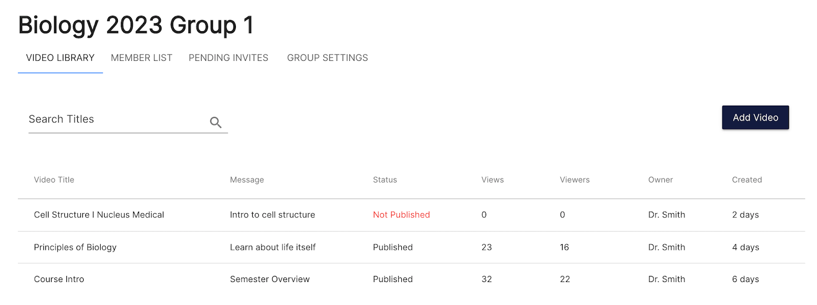 Each Group has a dedicated and private video library, member list, one or more administrators, and custom settings.