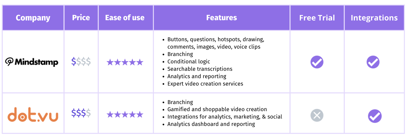 Below is a breakdown of Dot.vu and how it compares to the leading interactive video platform, Mindstamp.