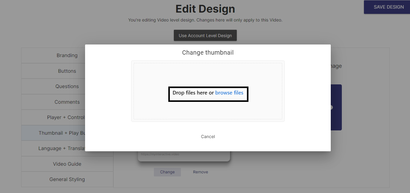 Here is where you’ll be able to either drag and drop the thumbnail image file into the box or browse your computer files to upload your video’s new thumbnail image.