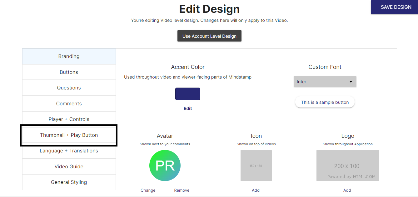 After uploading your desired image, click “SAVE DESIGN” and your new thumbnail will be saved and ready to go!