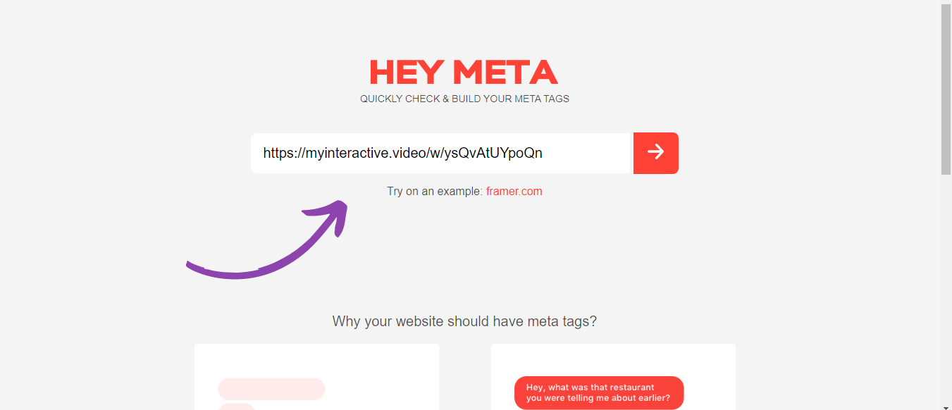 Then, navigate to HEYMETA.com and enter the link you previously copied in the box.