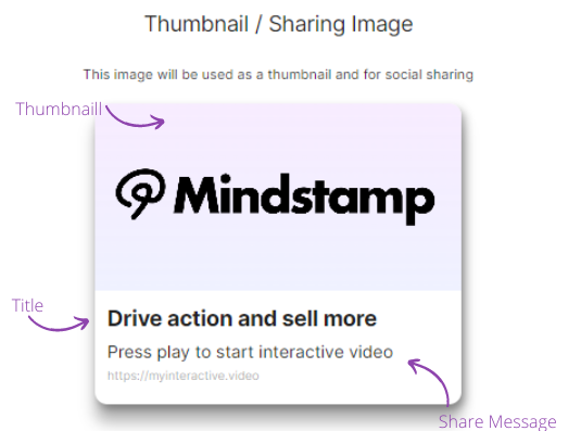 Below is an example of a social card preview that displays how your video will look on social media, including your video’s social share image (aka thumbnail), video title, and share message.