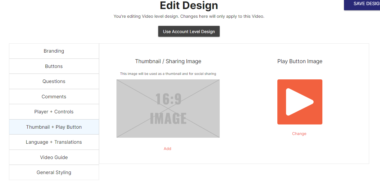 Step 6. Click on “Thumbnail + Play button” in the left sidebar.