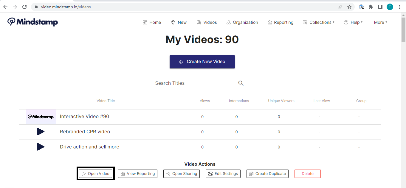 Step 4. Click on the video you wish to edit and click “Open Video” to access your video’s settings.