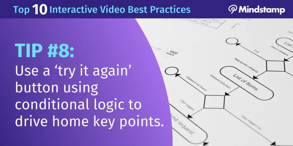 “Try It Again” Conditional Logic is one of the Top 10 Best Practices for Interactive Video in 2021— To see the remaining best practices and learn more tips on creating successful interactive videos, visit “The Top 10 Best Practices for Interactive Video in 2021” or start your 14-day free trial with Mindstamp’s interactive video platform to see these video best practices in action.