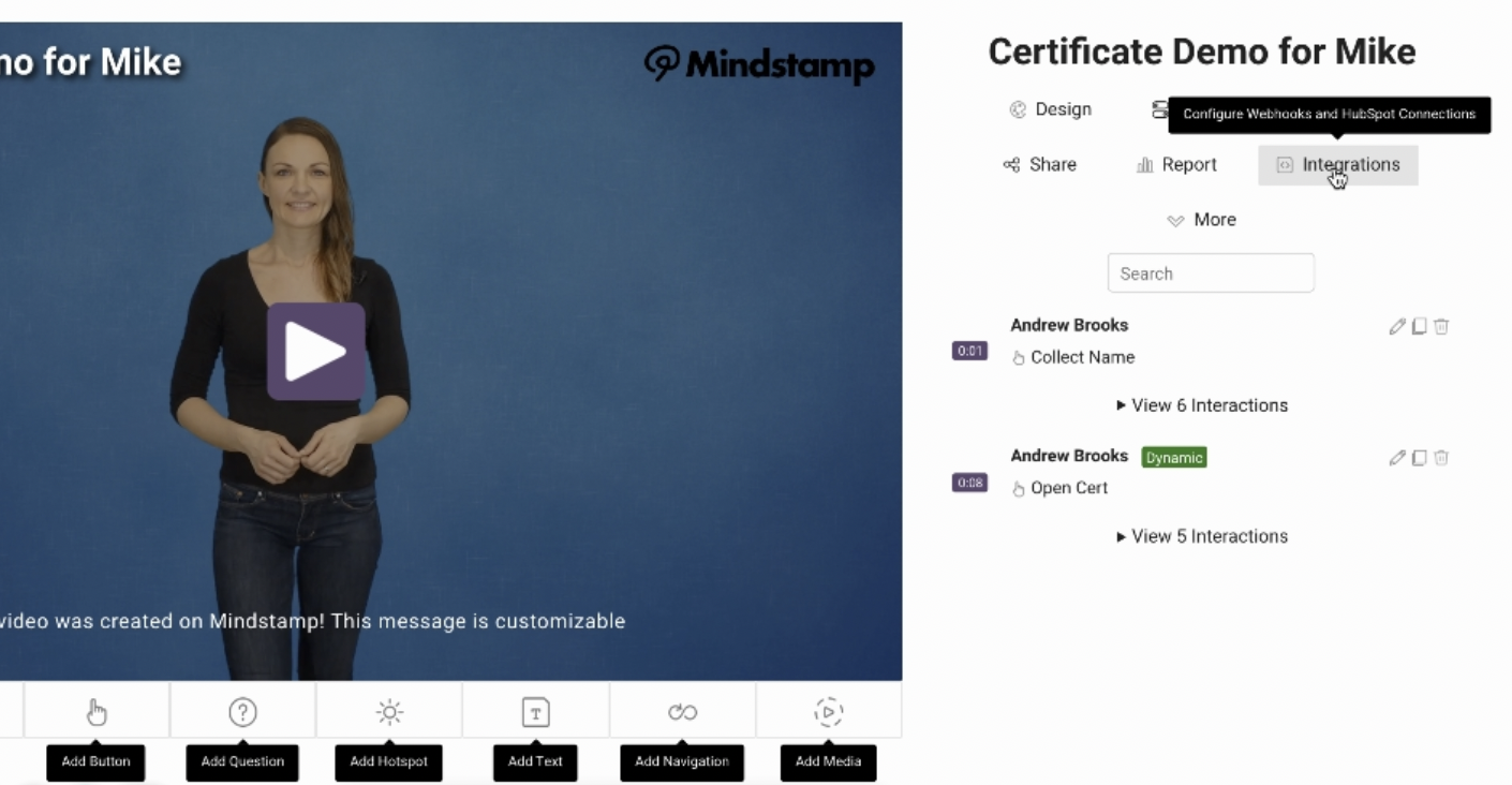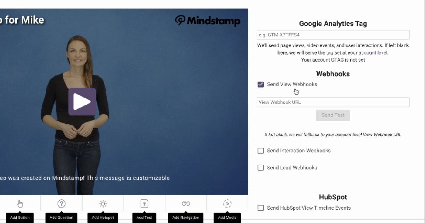 Mindstamp Enterprise customers can send individual Webhooks for each interaction click (for instance a click on a button) or question answer that viewers provide within the interactive video.