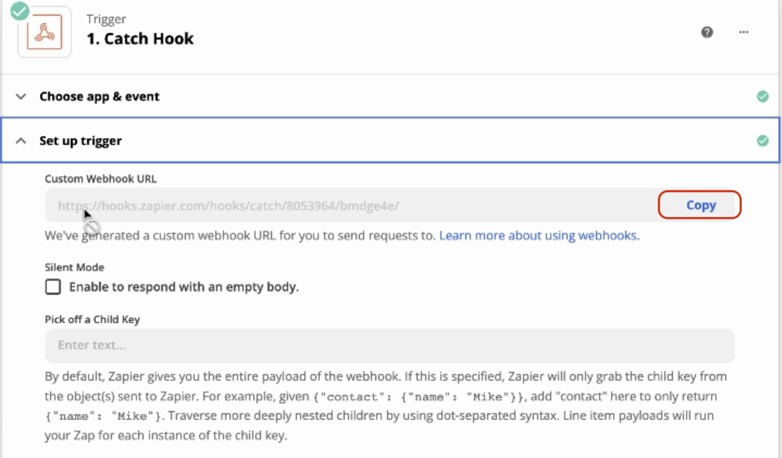 Click the Copy button next to Custom Webhook URL. This is where Mindstamp will send the information from your interactive video