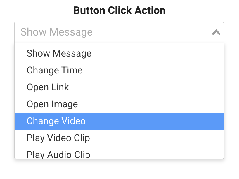 All options are viewable in the Button Click Action drop down and then configured in the Action Value field.