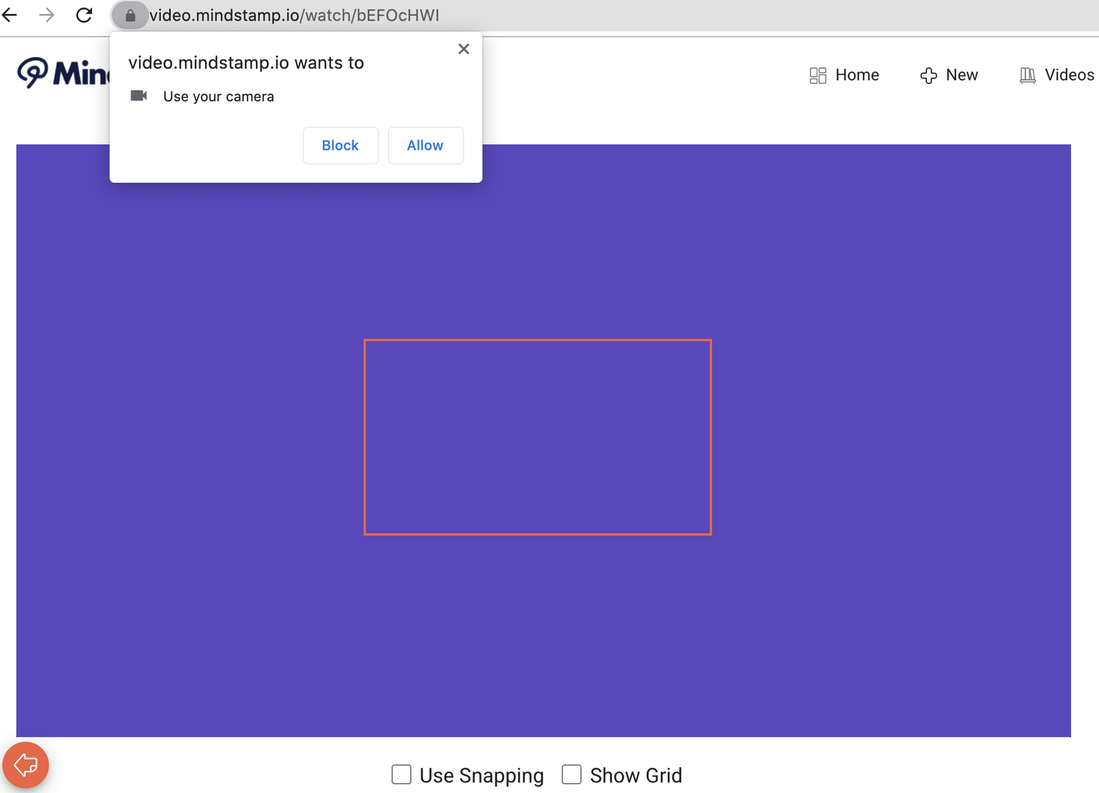 Click ‘Continue’ and be sure to grant the browser permission to use your camera by selecting ‘Allow’ in the pop-up.