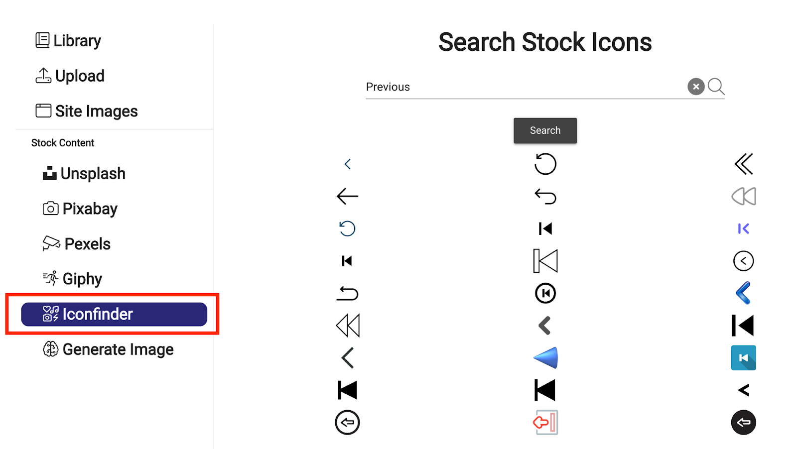 IconFinder is live today on all subscription plans! Simply add an image interaction, and then select the IconFinder tab from the left side to search for your desired icon: